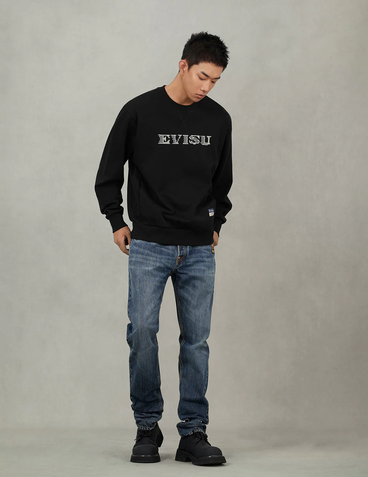 This stylish denim jeans features a premium wash process, delivering a unique faded effect that adds a vintage flair. The standout design highlight is the intricately brocade patch pocket on the back, featuring exquisite patterns paired with gold seagull and EVISU logo embroidery, showcasing a distinctive premium texture. The carrot-fit perfectly contours to the leg line, accentuating a slender silhouette, making it ideal for everyday wear or trendy outfits.