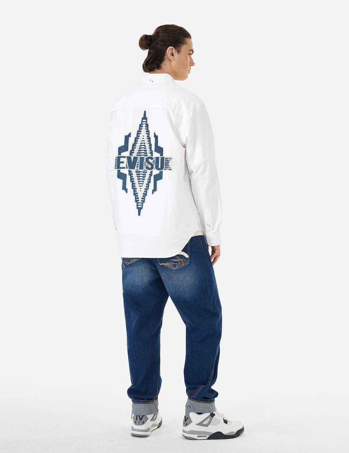 Elevate your casual wardrobe with this meticulously crafted shirt. Blending EVISU's signature seagull emblem and logo with striking Chimayo Tapestry patterns, the design creates a cohesive and visually striking look from front to back. With a classic, comfortable fit, this versatile piece seamlessly transitions from day to night when paired with your go-to denim.