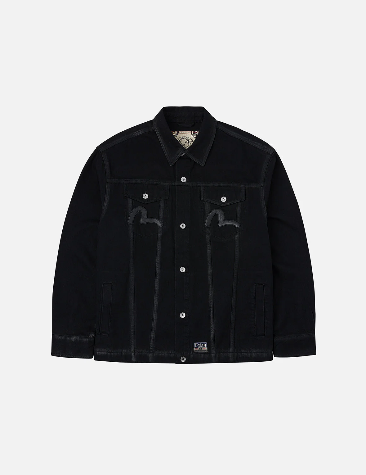 Kamon and Seagull Appliqué Regular Fit Denim Jacket Shirt