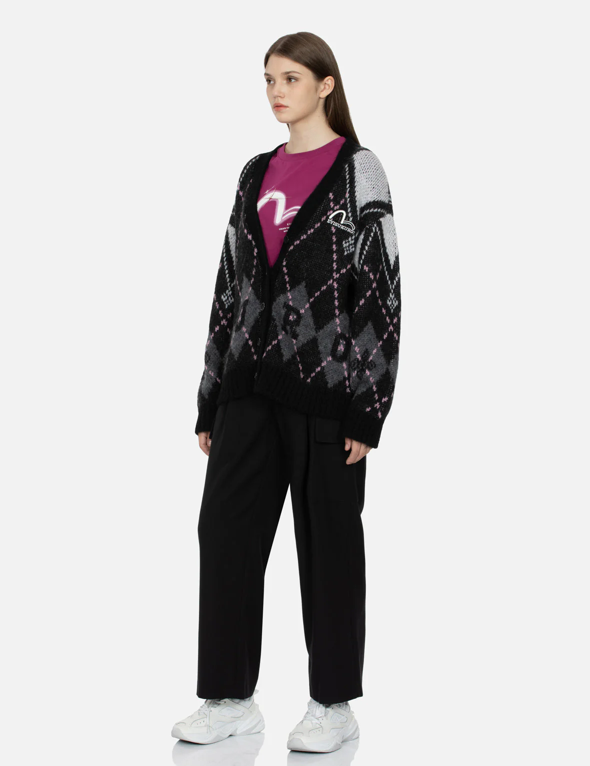 Logo and Seagull Embroidery Relaxed Fit Argyle Cardigan