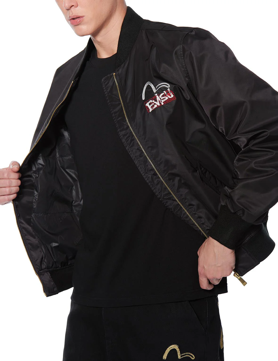 A melting pot of traditional and contemporary, Japanese and Western aesthetics, this padded bomber jacket is defined by multi-layered graphics in various treatments and finishes at the back that are equally breath-taking from afar and up close.
