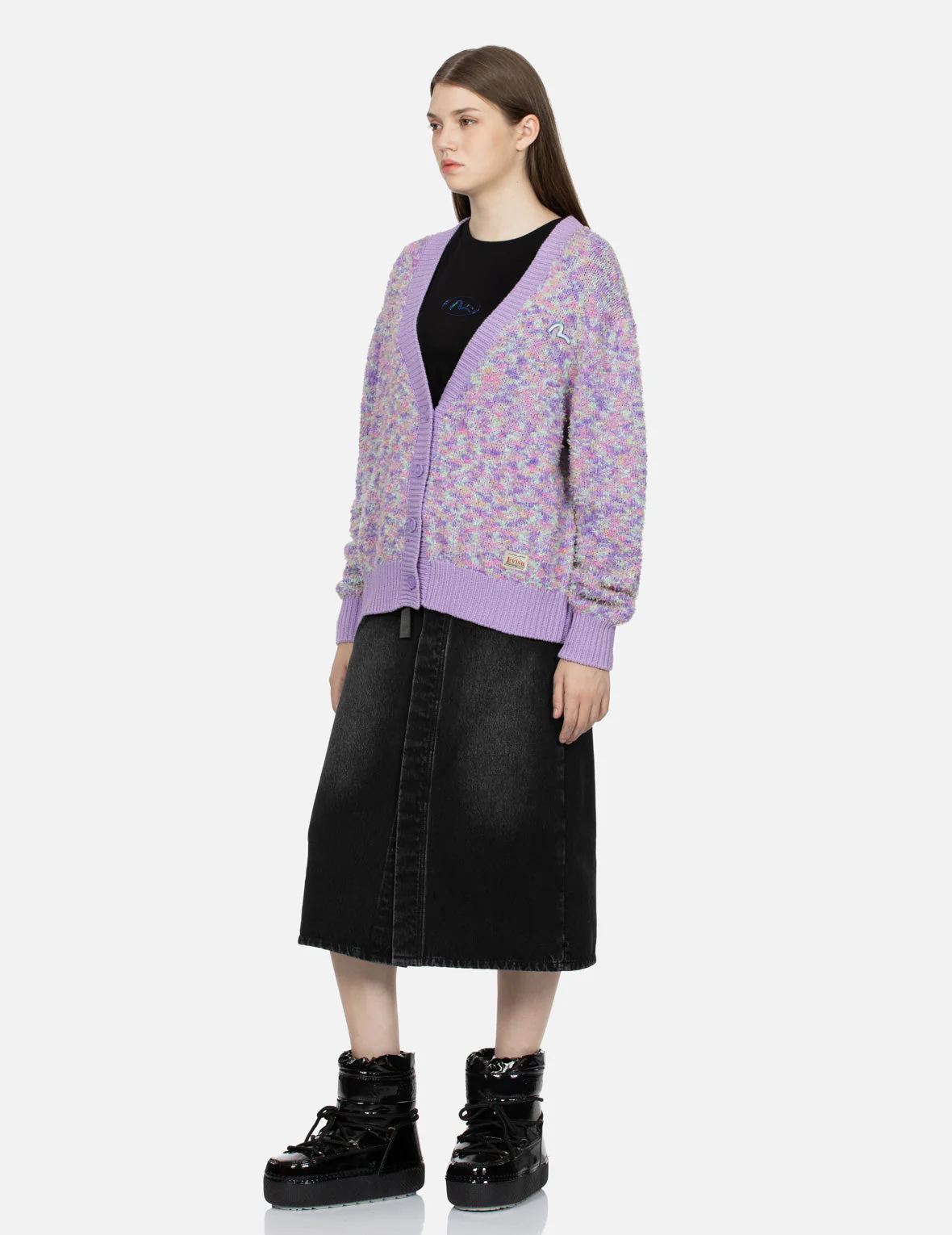 EVISUs multi-color cardigan is designed for a cropped length, and is punctuated with seagull embroidery at left chest. Simply style yours with skinny jeans and sneakers for a laid-back weekend.