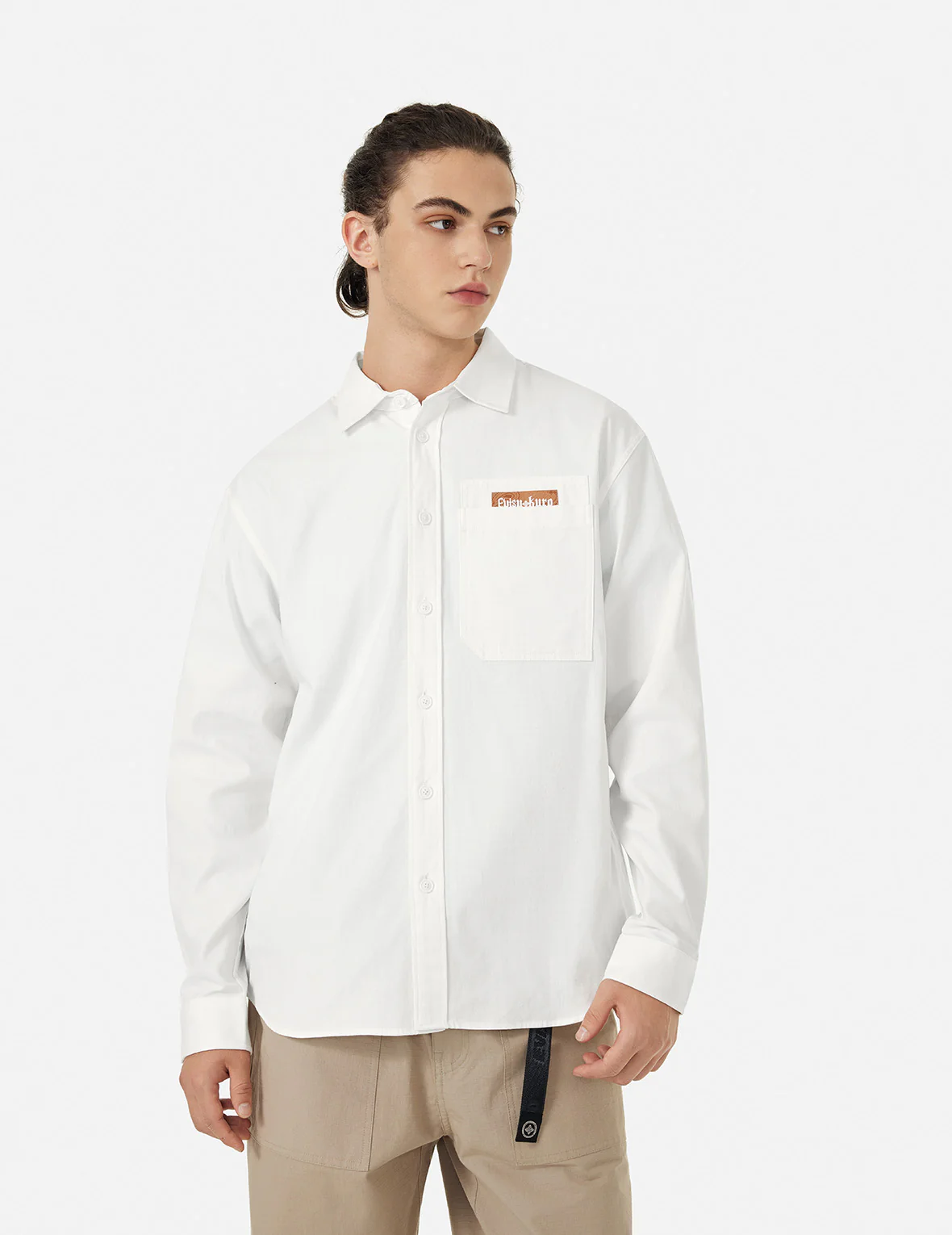 Are you looking for a versatile shirt? This shirt features a simple and clean design with a brand label on the front and Seagull embroidery on the shoulders. This minimalist yet stylish design is a wardrobe essential!